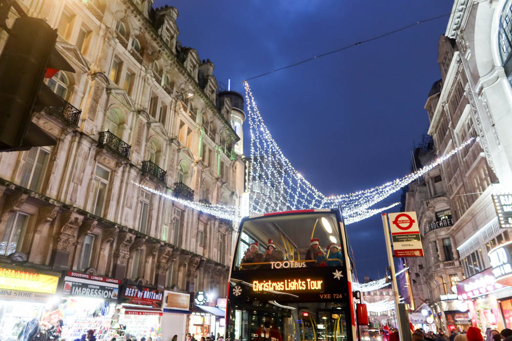 Central London is a dazzling display of lights throughout the whole festive period, and you can take an open-topped bus tour to see all of it.