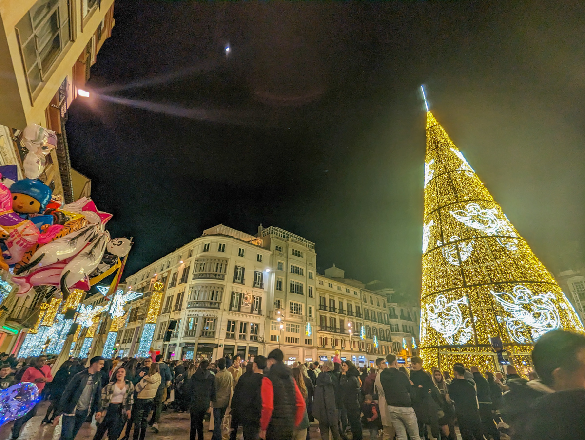 Glittering palm trees at night remind you that you’re in Spain, but they don’t dampen the festive cheer!